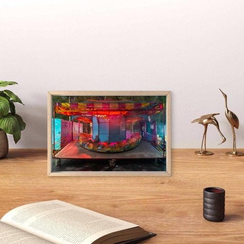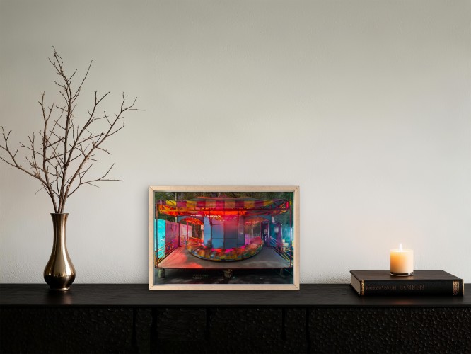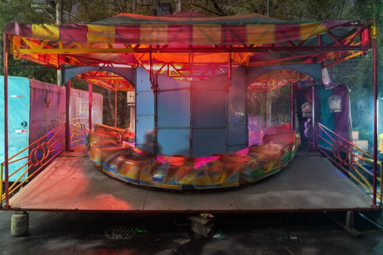 Una de las tradiciones populares que persisten en la metrópolis, son los juegos mecánicos que se montan (y desmontan) en las ferias de las fiestas de santos patronos en distintas partes de la Ciudad de México. A partir de imágenes documentales de estos eventos (2013-2015), retomo ese aspecto lúdico de la feria y se lo traslado a la edición, generando nuevas piezas finales a través de diferentes ejercicios de superposición de fotos y exposiciones múltiples, ya sea física o digitalmente.